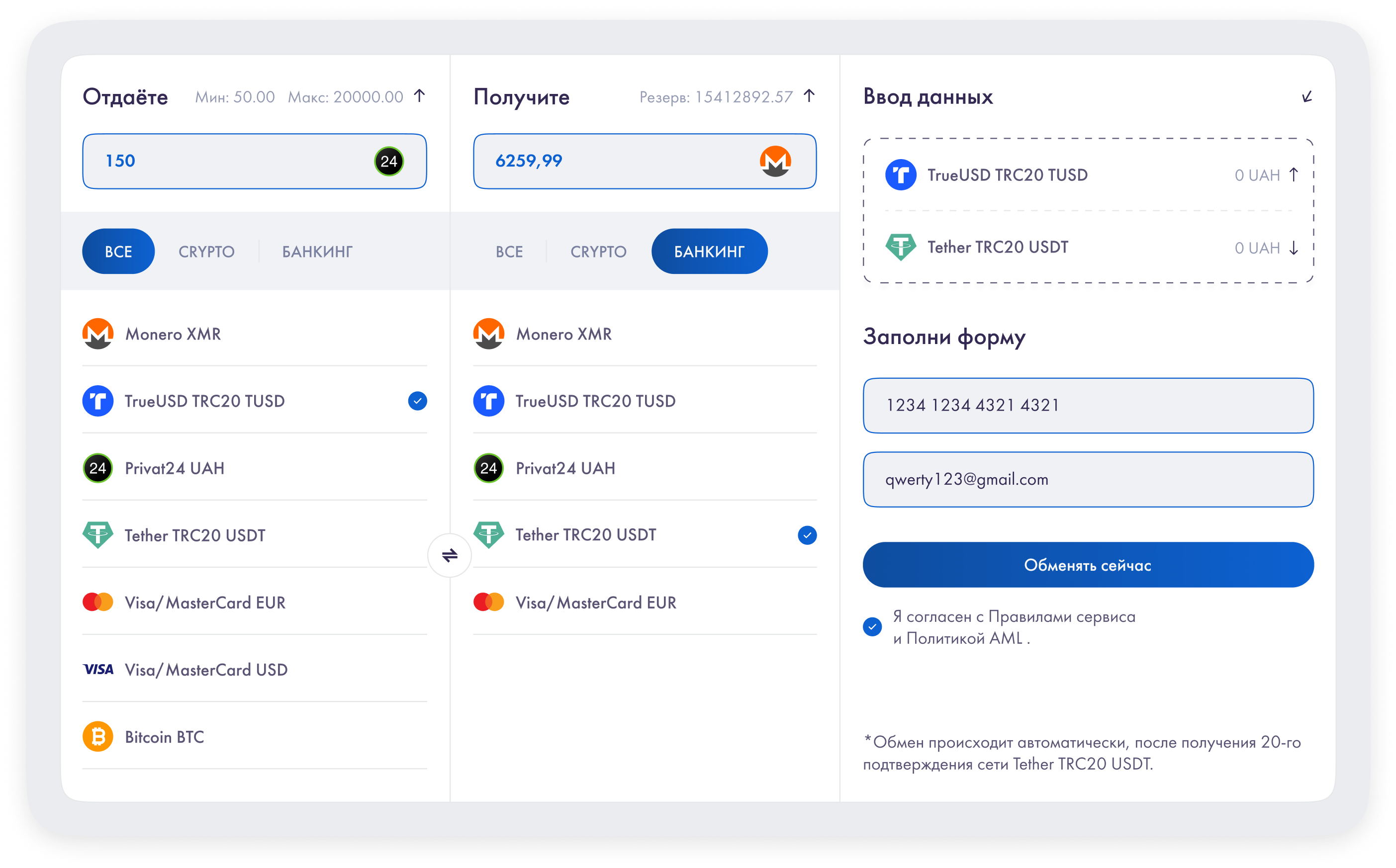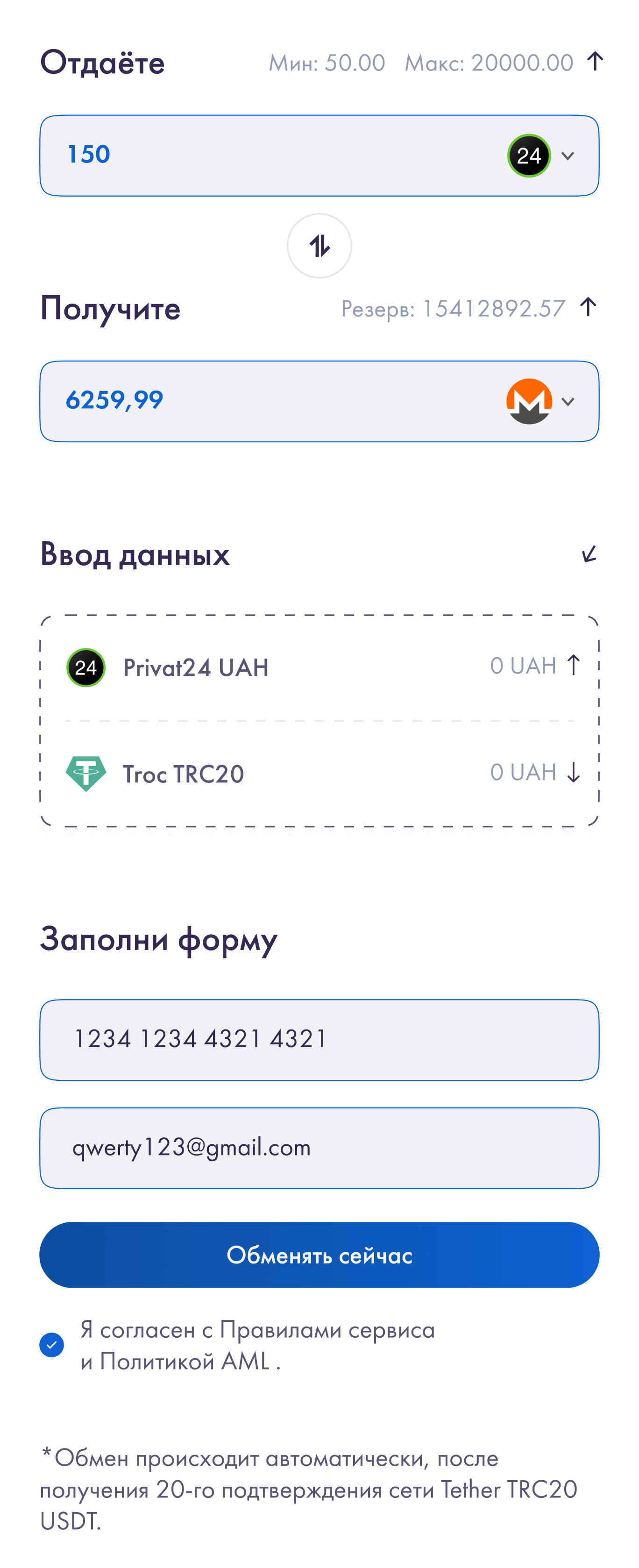 - Соглашаемся с условиями и нажимаем кнопку “Обменять сейчас”